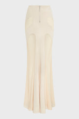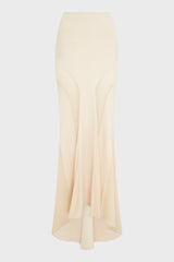 Sand light crepe gradient skirt from Dion Lee. Full length skirt cut in a lightweight silk blend with stretch for effortless drape and movement. Designed to sit on the hip with a slightly flared, trailing hem. Featuring panels of semi-sheer cotton crepe rib contouring the body. Elastic binding at waist and exposed metal zip at back.