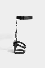 The Pocket Suspender Harness, a utilitarian take on our Suspender Harness, made with smooth saddlery leather fastening on a buckle, this piece features a leg pocket. The pocket design fastens on a single large stud and fits the essentials perfect for when you want to go out hands free.